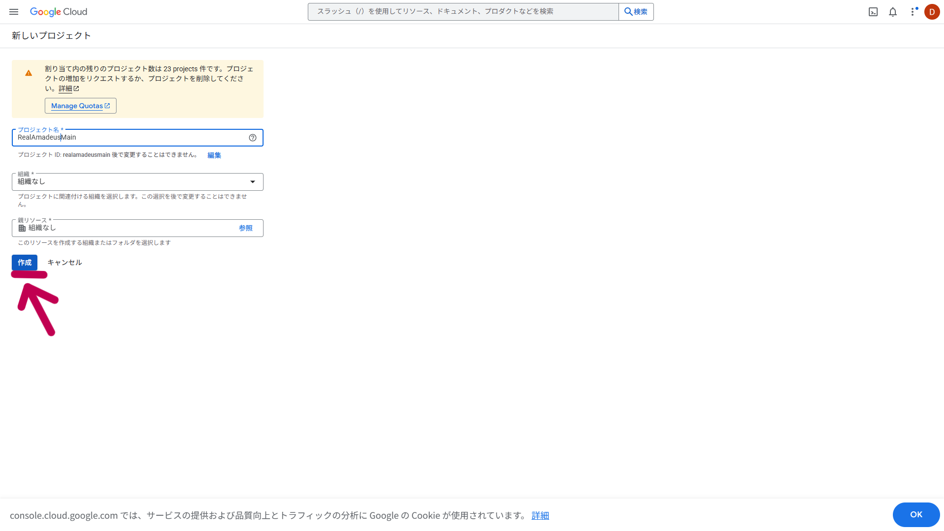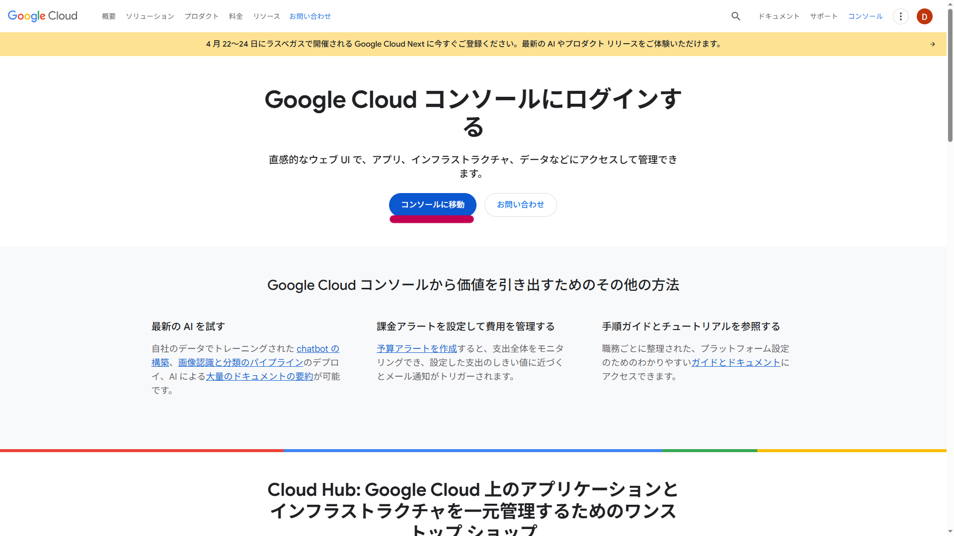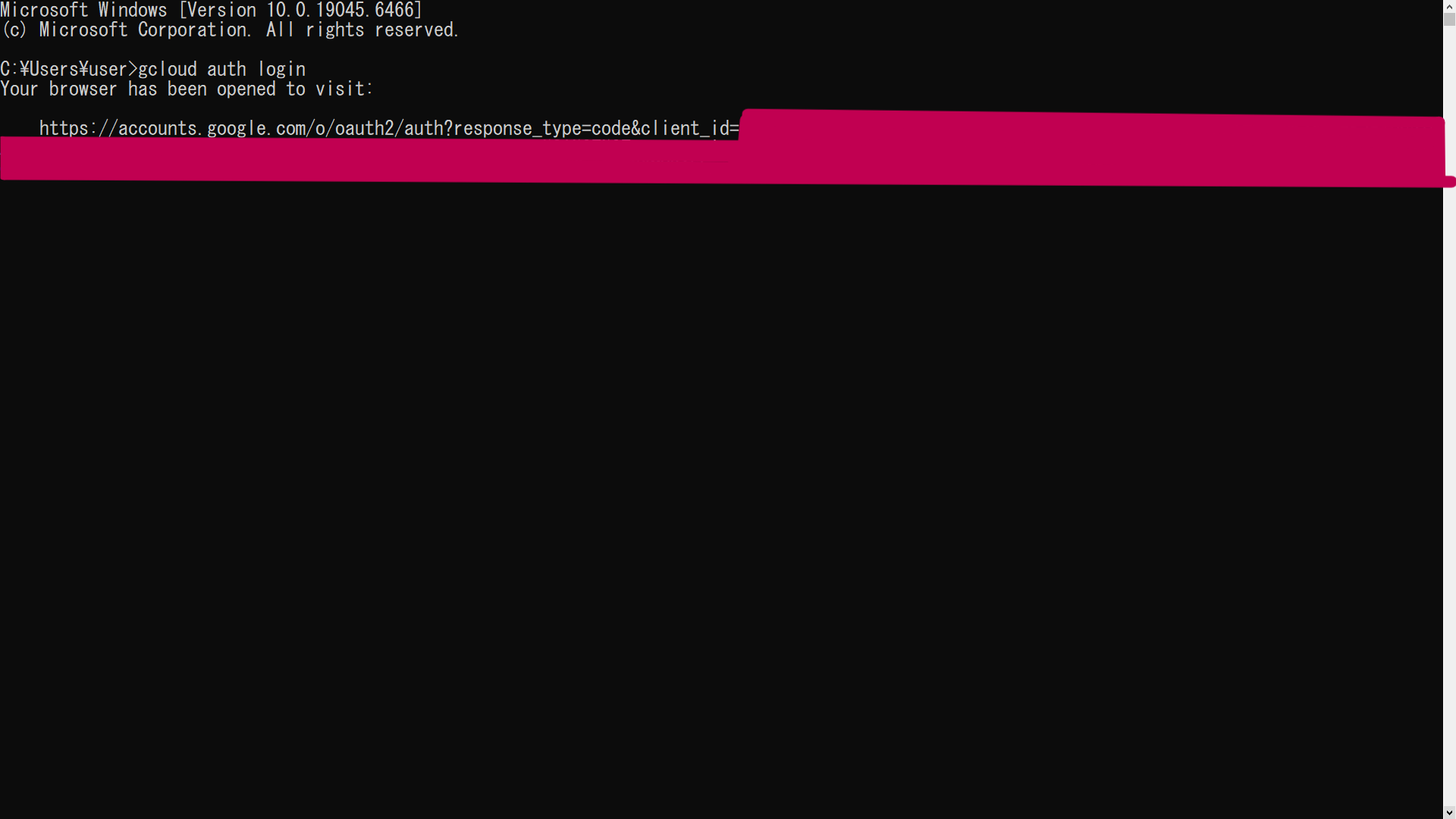 Google Cloud CLI (gcloud) Installer をダウンロード、インストールしてセットアップします。その後、コマンドプロンプト(cmd)を開き、gcloud auth loginを実行してログインします。