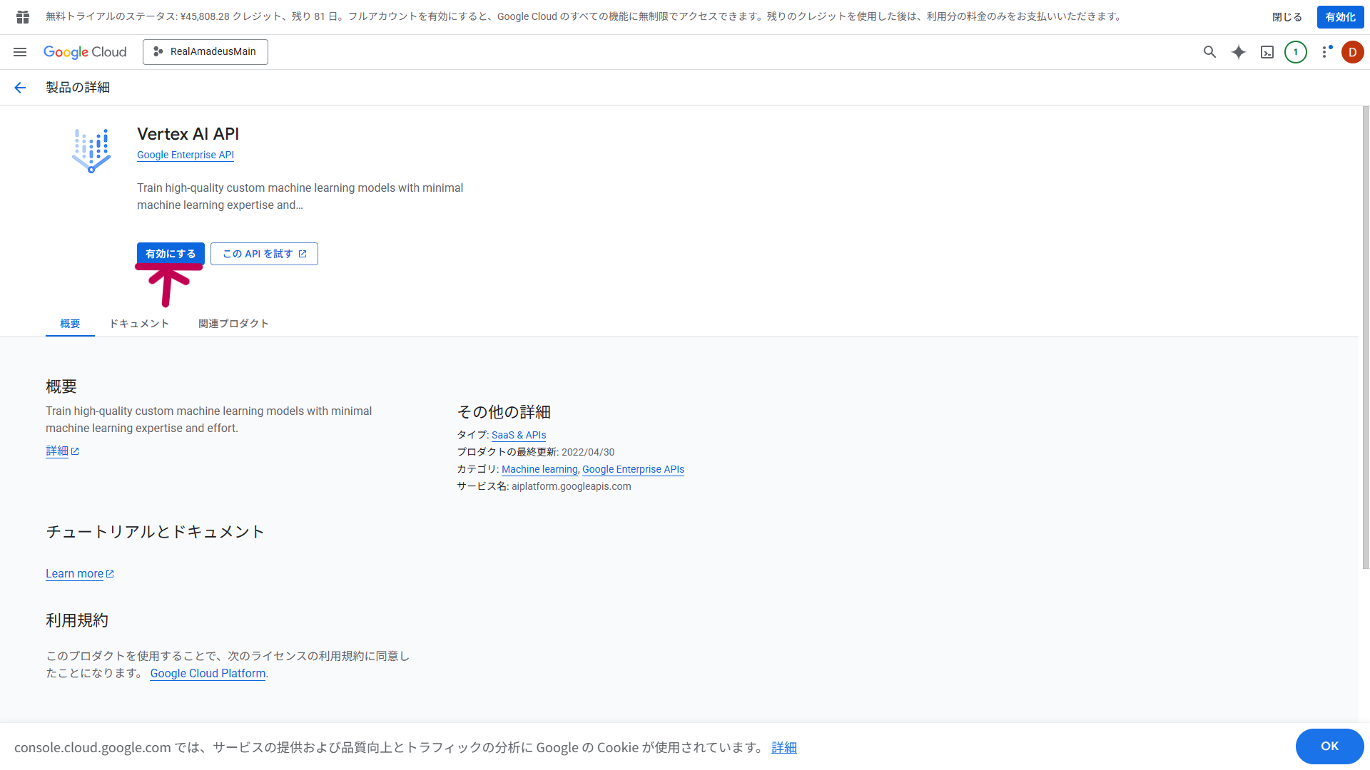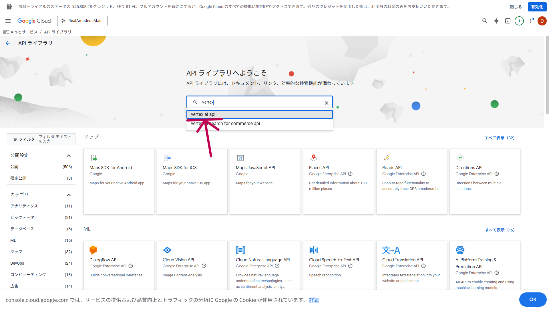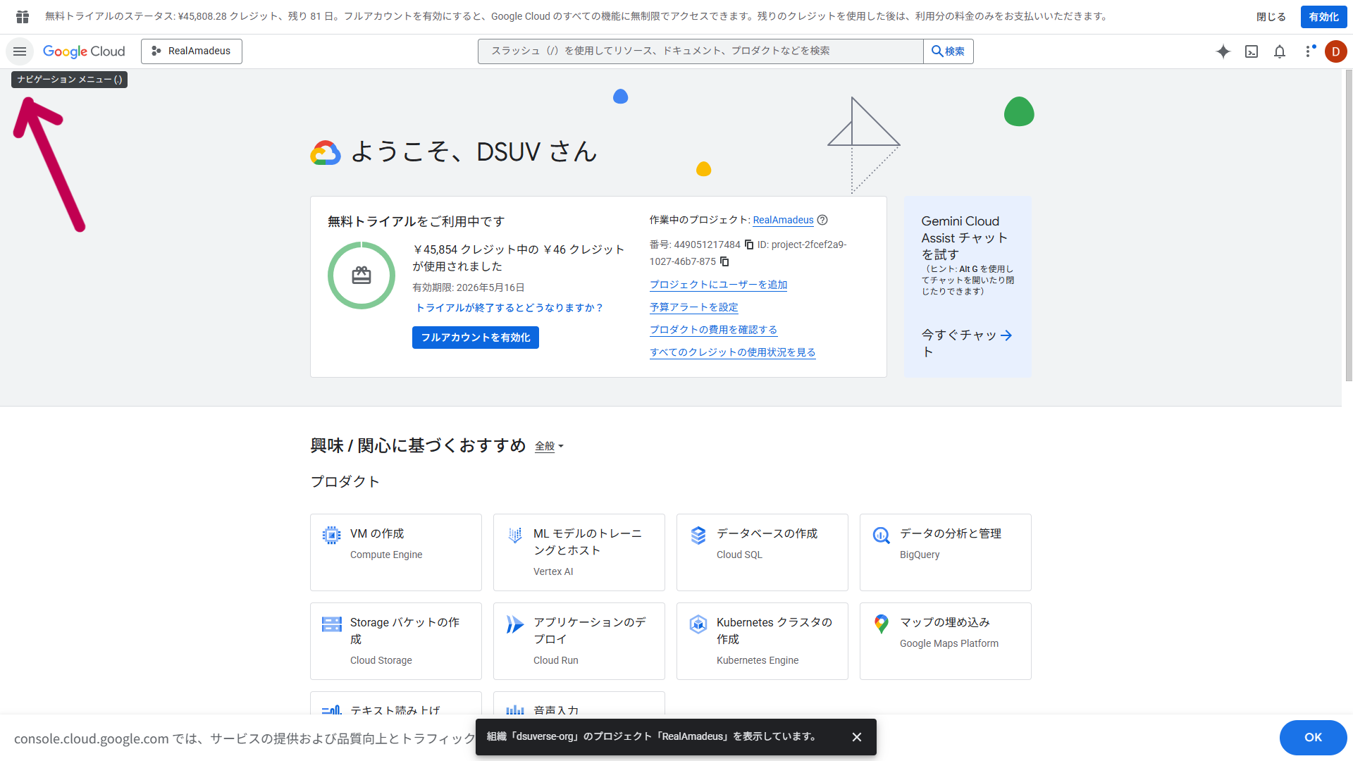 STEP3で作成したプロジェクトのIDを確認します。システムメニューのCONFIGから「Vertex AI」を選択し、利用するプロジェクトIDとモデル名(例: gemini-3-flash-preview)を設定します。認証トークンはシステムがgcloud経由で自動取得します。